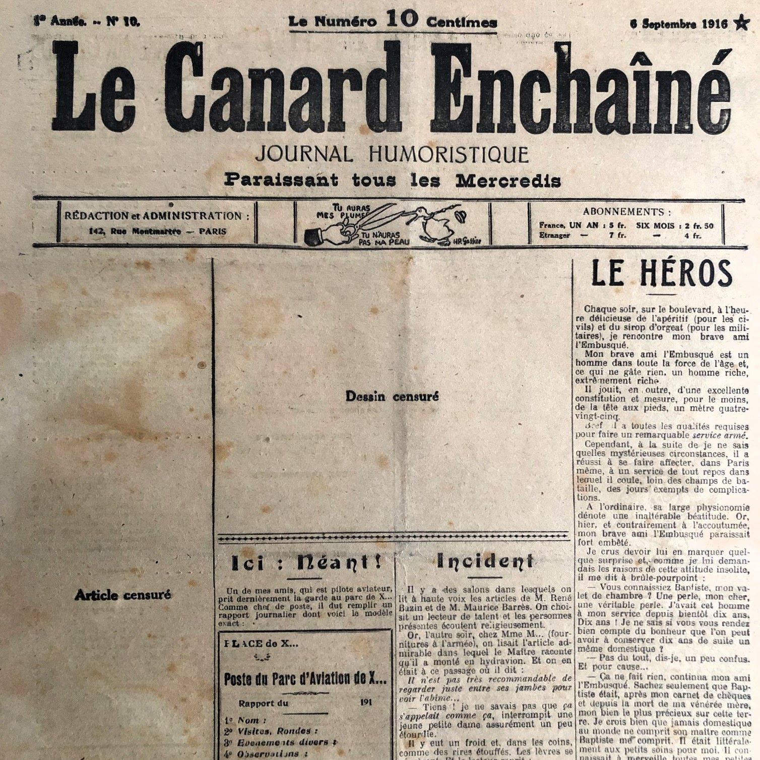 N° 10 du Canard Enchaîné – 6 Septembre 1916