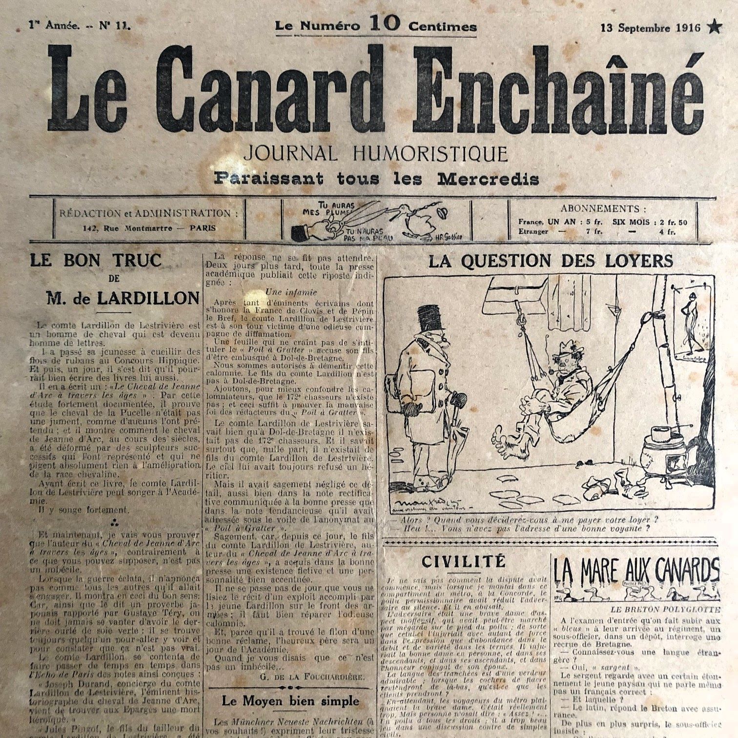 N° 11 du Canard Enchaîné – 13 Septembre 1916