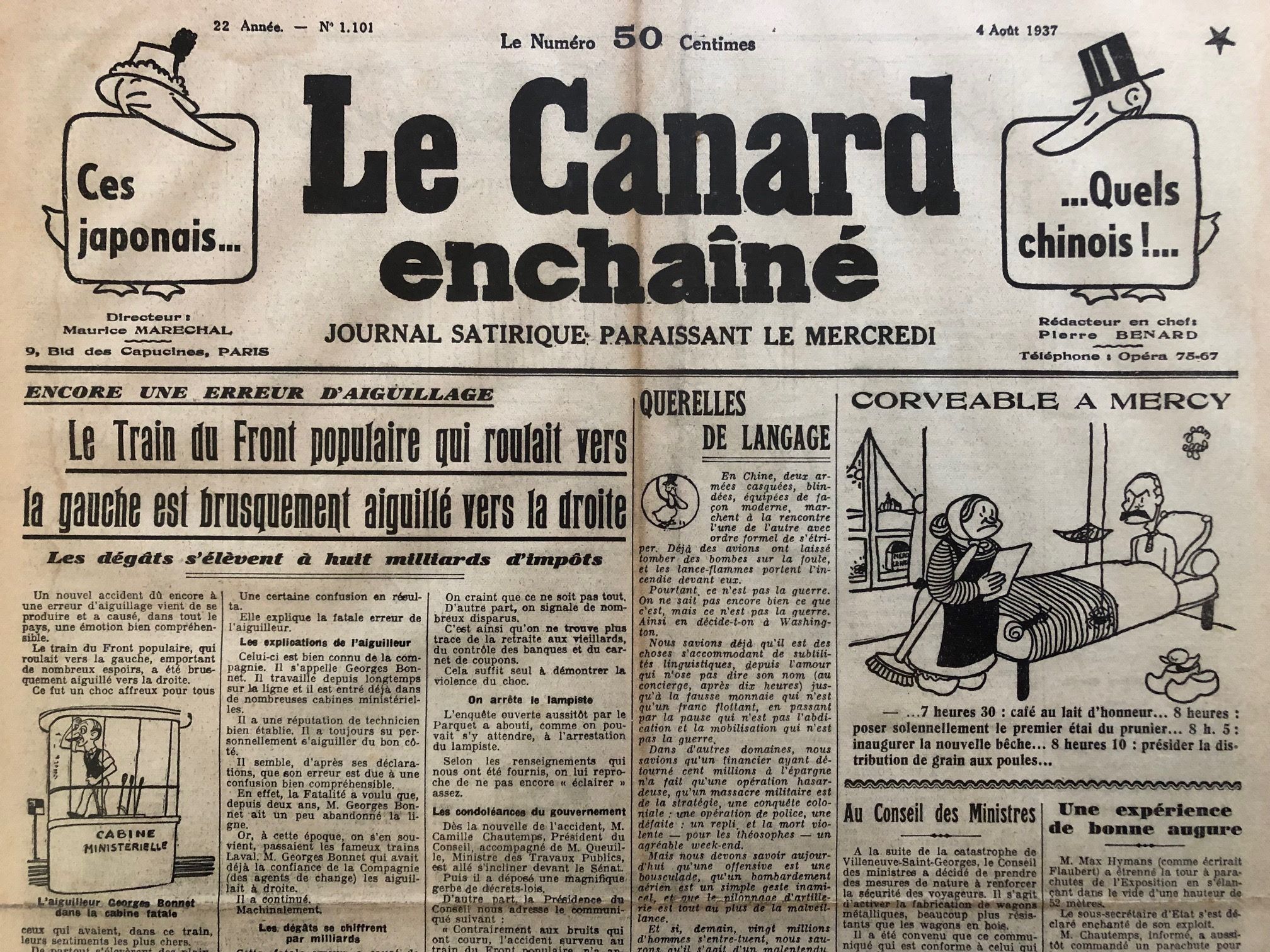 N° 1101 du Canard Enchaîné – 4 Août 1937