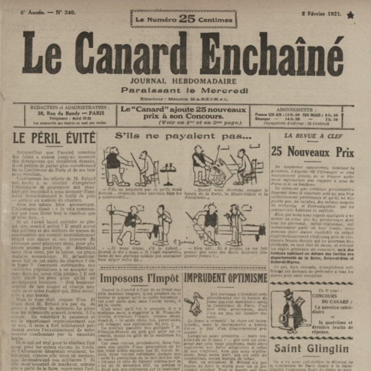 N° 240 du Canard Enchaîné – 2 Février 1921