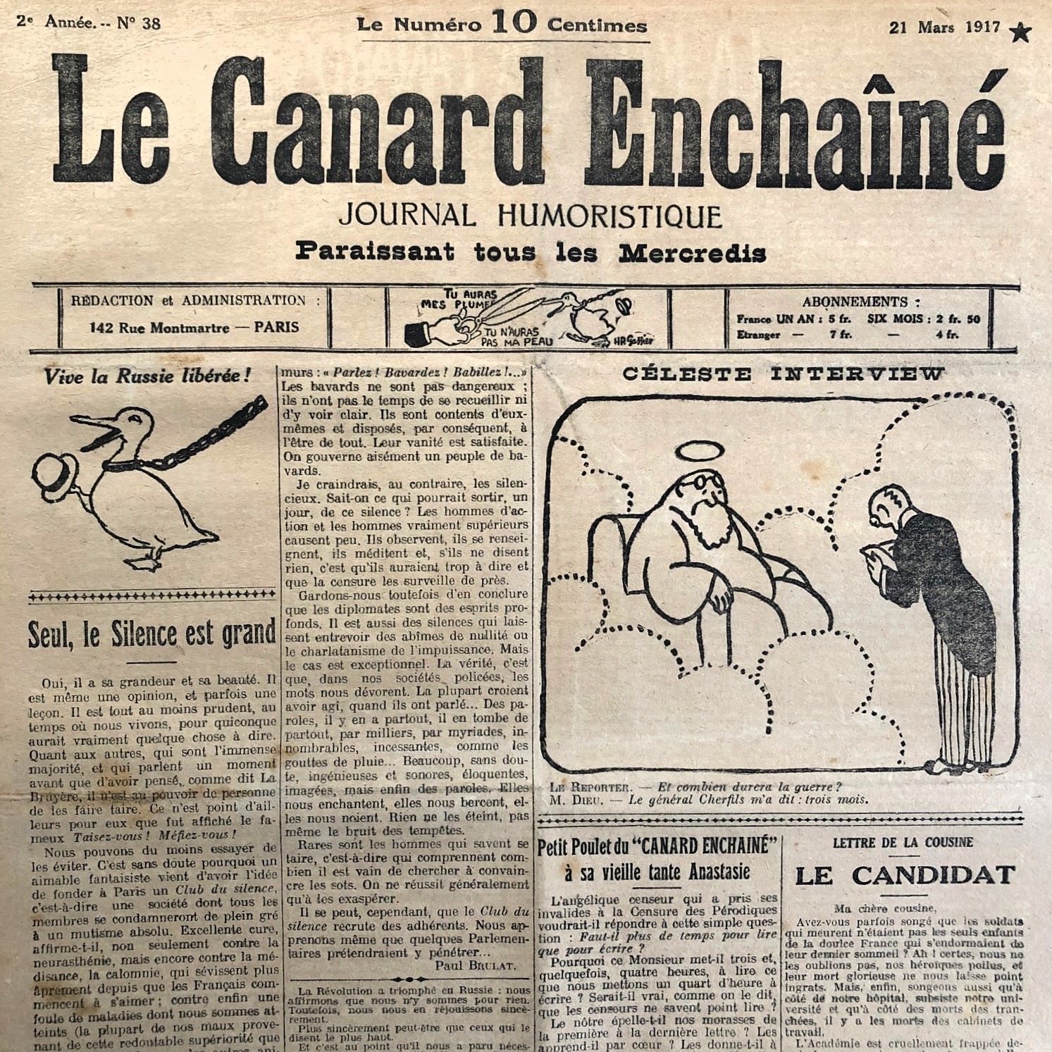 N° 38 du Canard Enchaîné – 21 Mars 1917