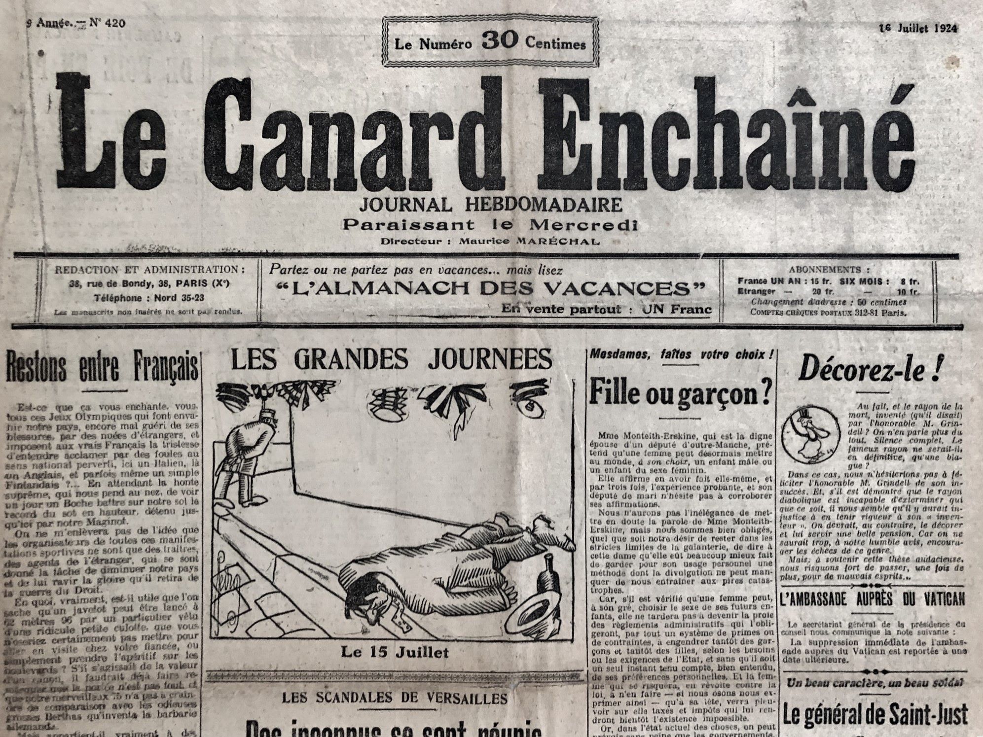 16 juillet 1924 : entre chauvinisme et cocasserie, le Canard se moque de la France satisfaite d’elle-même