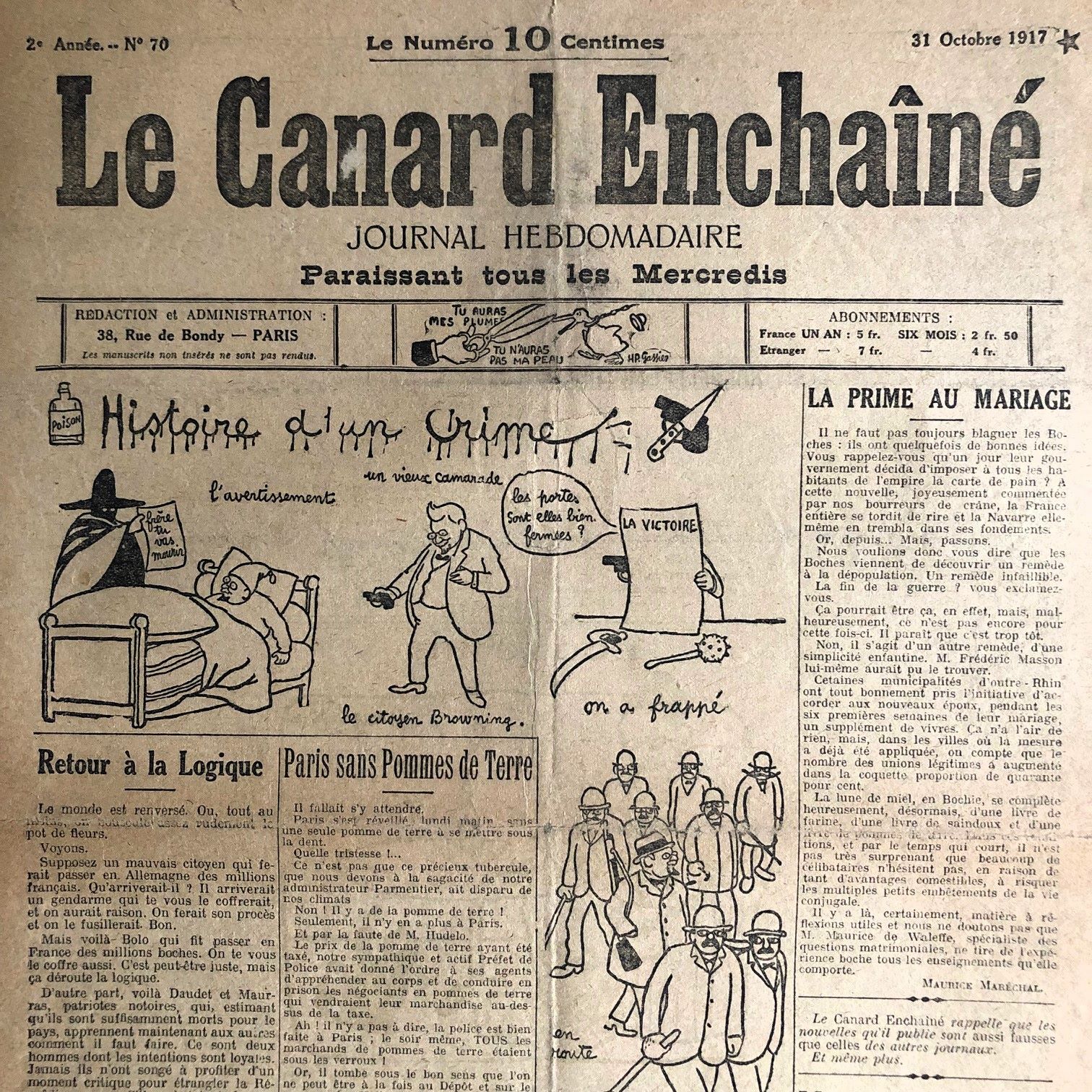 N° 70 du Canard Enchaîné – 31 Octobre 1917