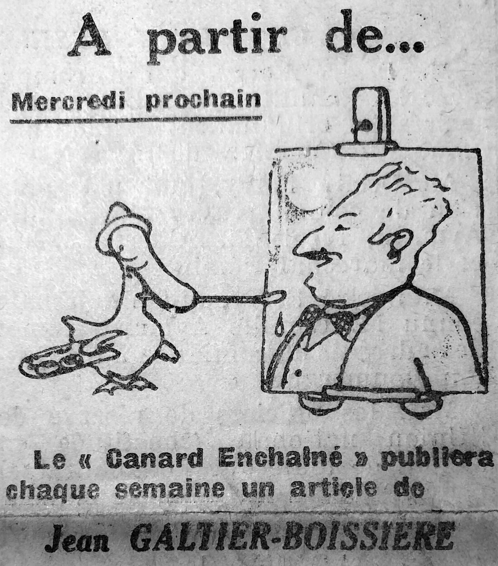 Au lendemain du 6 février 1934, Galtier-Boissière entrait au Canard enchaîné (auquel il avait collaboré pour la première fois en 1922) après la démission de La Fouchardière.